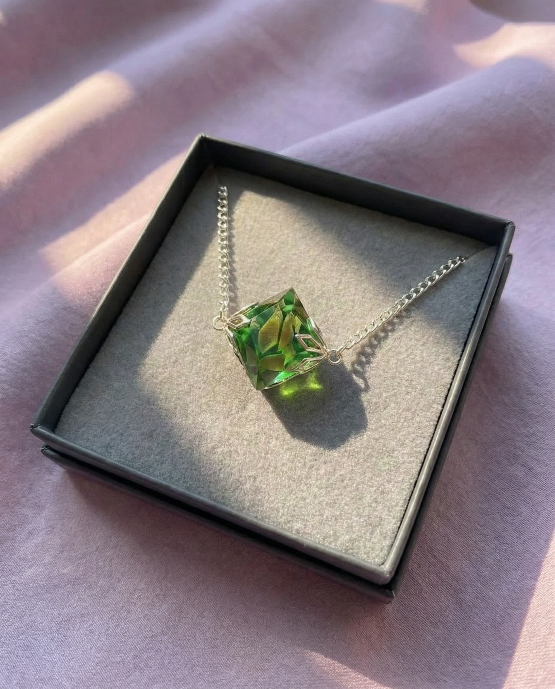 • Paired with a precision-engineered 1.2mm Twisted Helix chain. This specific weave was selected for its high tensile strength and fluid movement, providing a continuous, sophisticated shimmer that mirrors the radiance of the meteor shard.
